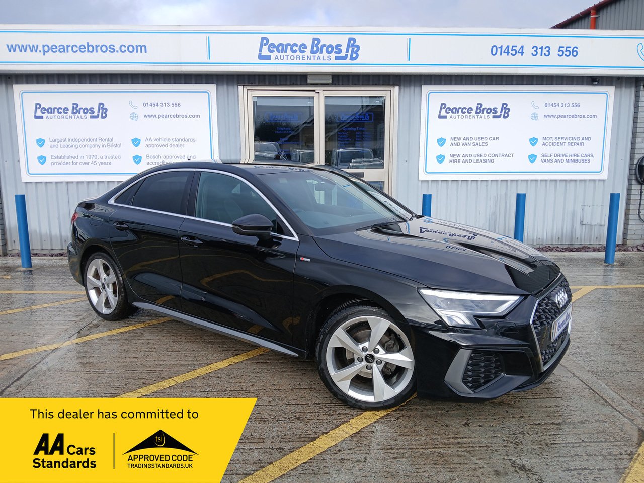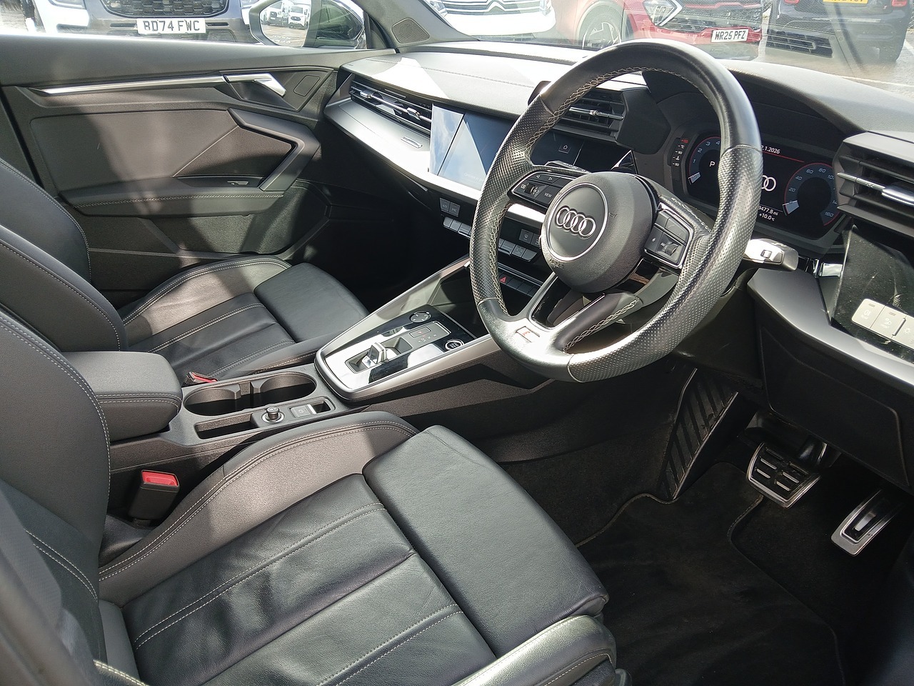 2023 Audi A3 TFSI S Line. 1.0L petrol engine, automatic gearbox. Metallic black. Euro 6, ULEZ compliant.