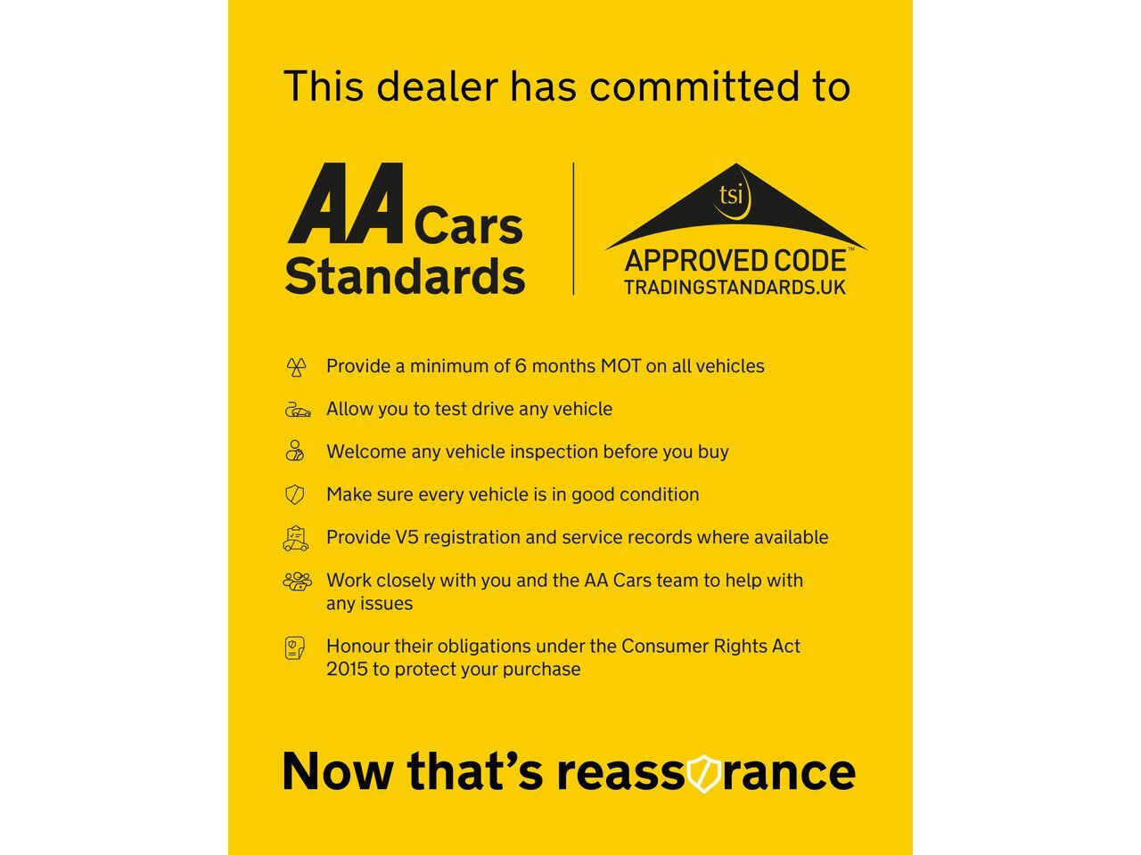 This vehicle comes with 3 months / 3000 miles warranty and 12 months free breakdown cover with the AA. We are an approved AA dealership.